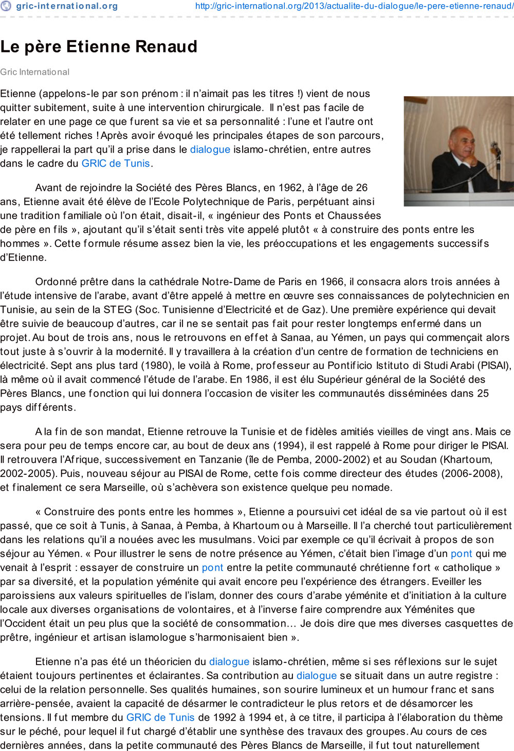 Le père Etienne Renaud, Gric international, André Meige, 24 juin 2013