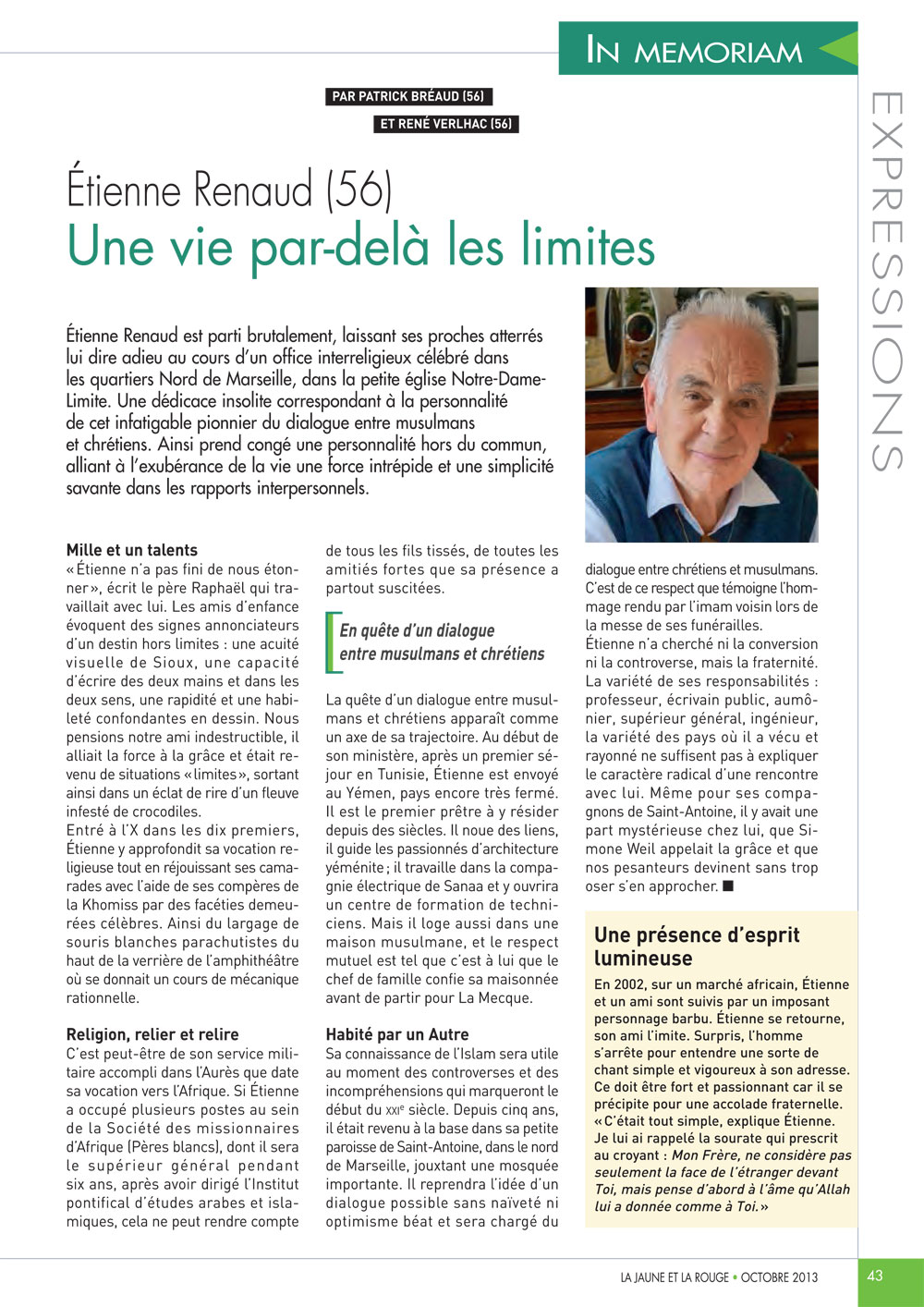 "Une vie au delà des limites", La Jaune et la Rouge, Octobre 2013