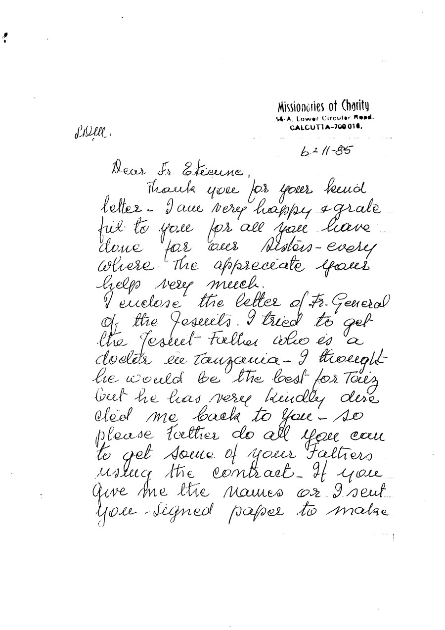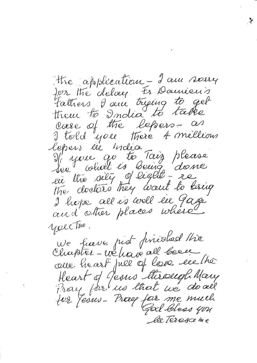 Une lettre de Mère Théresa, retrouvée dans ses papiers